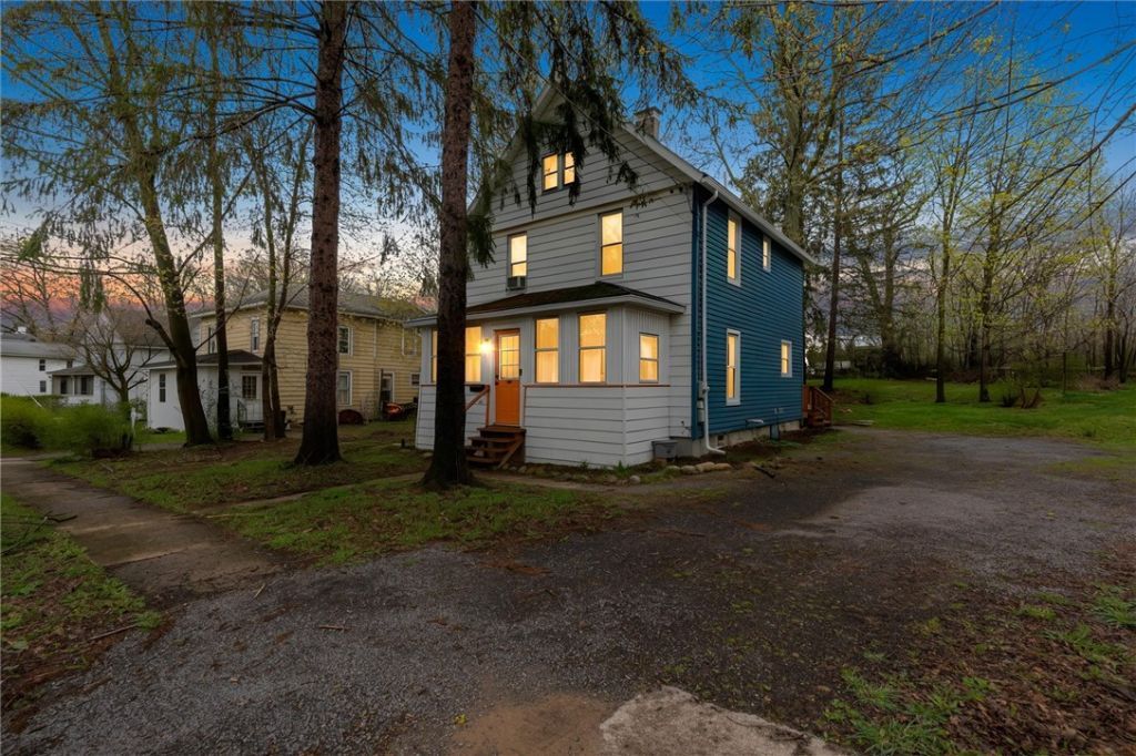 Well-maintained 2-story home offering a functional layout, bright living spaces, and a spacious yard. The enclosed front porch provides additional usable space and leads into a comfortable living area and open kitchen/dining area with ample cabinetry and natural light. The first floor includes a half bath and laundry area for added convenience. Upstairs features multiple bedrooms and a full bath. Updated flooring and neutral finishes throughout provide a clean, move-in ready feel. The property sits on a deep lot with a large yard, detached garage, and off-street parking. Conveniently located near local amenities, shopping, and services.